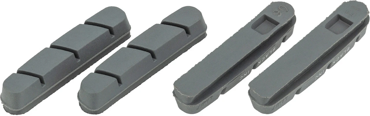 Die Bremsgummis von Black Inc besitzen eine spezielle Belagsmischung für Carbonfelgen. So können leichtgewichtigere Rennräder mit Felgenbremsen trotzdem mit High-end-Laufrädern aus Carbon gefahren werden, ohne dass das Bremsverhalten beeinträchtigt wird.