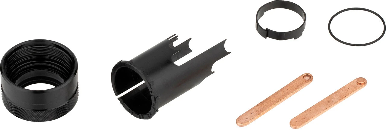 Lieferumfang:1 x obere Buchse e*thirteen Adjustable Travel Bushing1 x untere Buchse e*thirteen1 x Collar e*thirteen Einstellring2 x Keil e*thirteen Cylinder Key1 x O-Ring