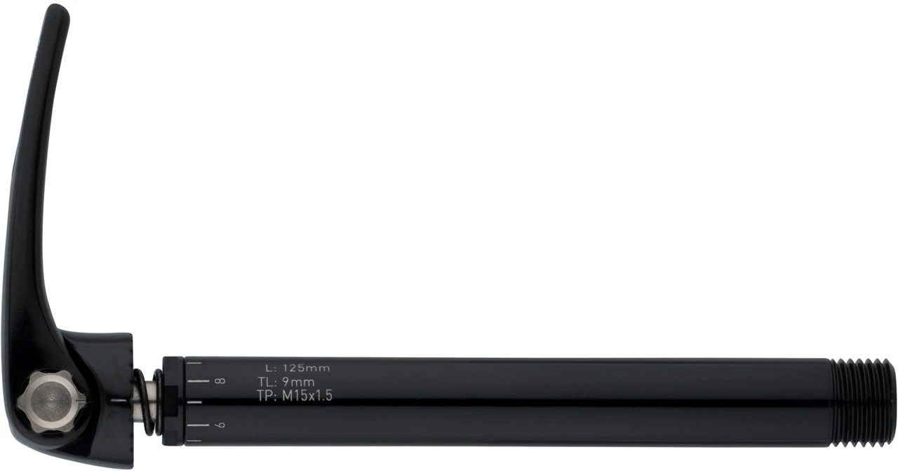 Technische Daten:Einsatzbereich:RennradGröße:12×100 / 15×100 mmAchslänge:125 mmGewindelänge:9 / 12 mmGewindesteigung:M12x1,50 / M15x1,50Ausführungen:12 x 100 mm: